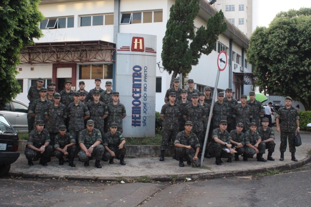 Numa ação solidária, 33 soldados e um sargento do Tiro de Guerra reuniram-se no Hemocentro de Rio Preto, hoje, 18 de maio, para doarem sangue. A ação acontece numa época em que o número de doadores na instituição cai bastante devido á baixa na temperatura e às doenças sazonais, como gripes e resfriados.