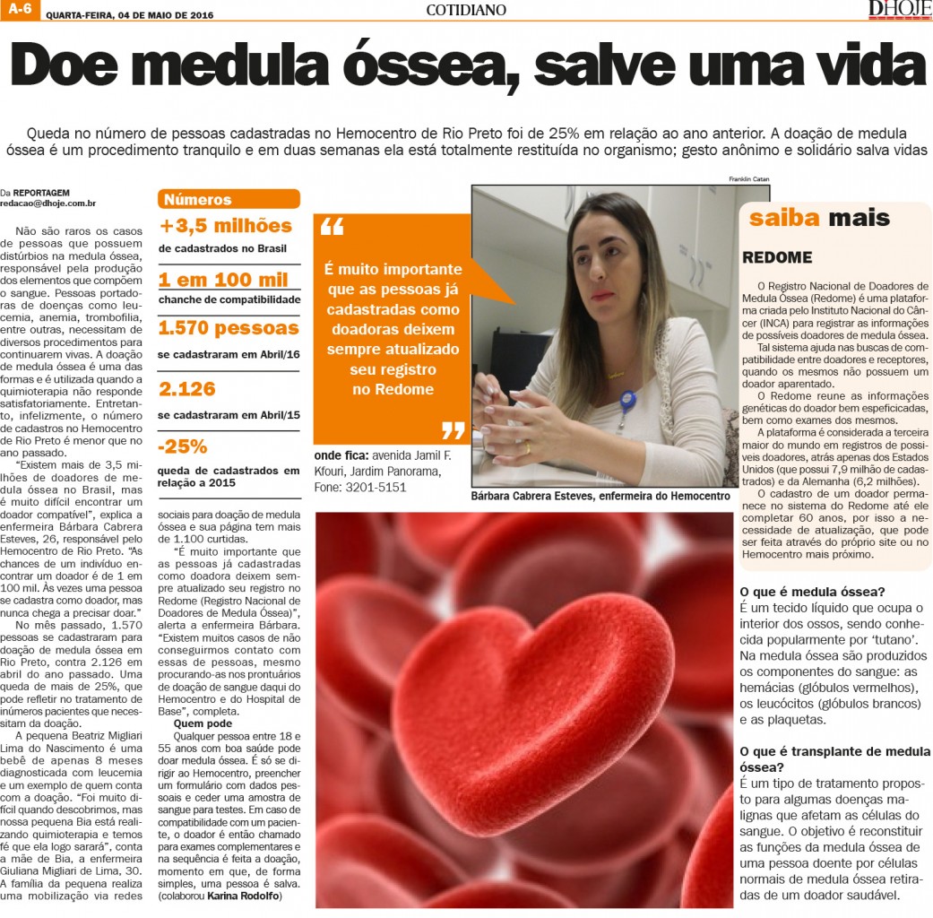 Dhoje Interior - 04/05/2016 - Doe medula, salve uma vida