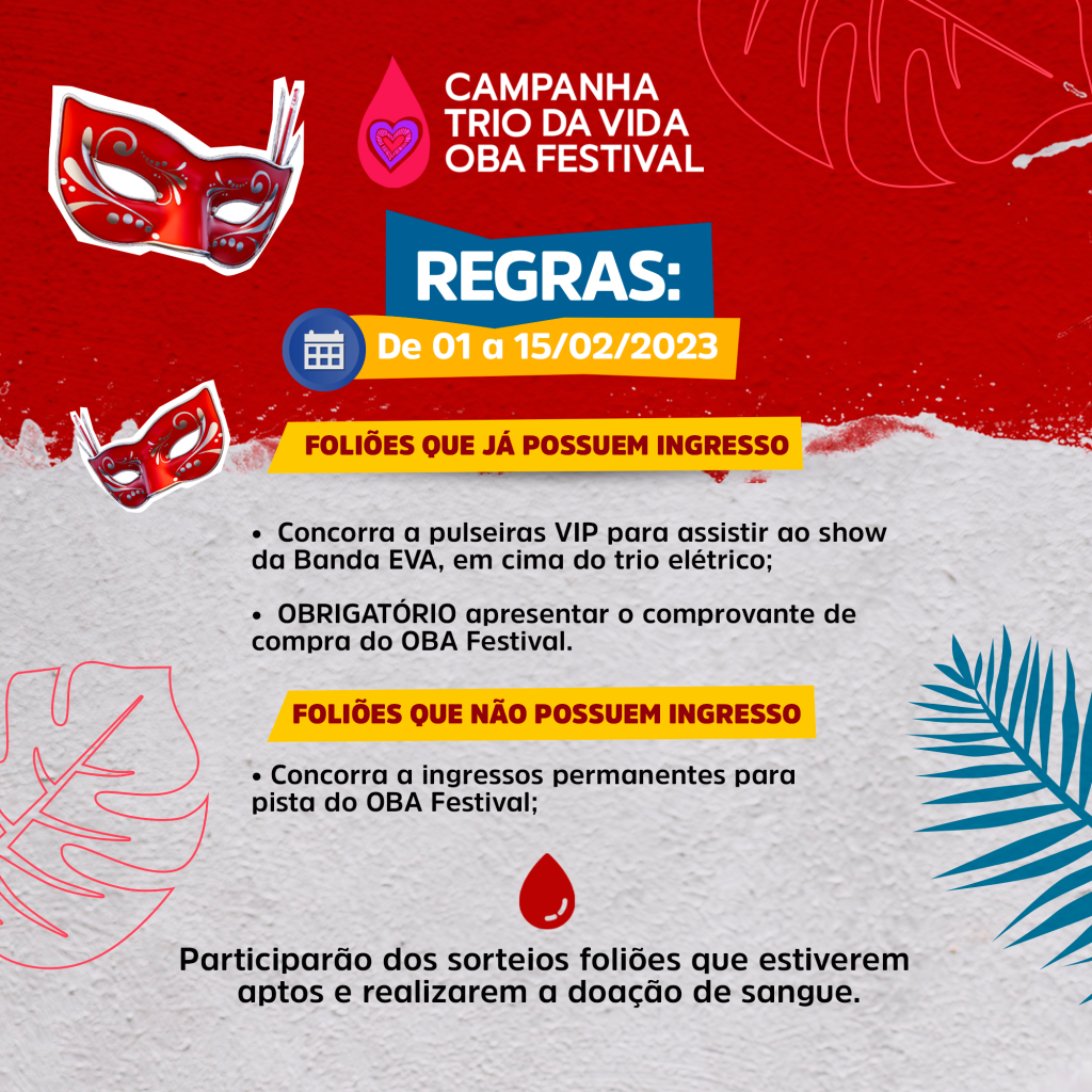 O OBA Festival, um dos maiores Carnavais do País e o maior do estado de São Paulo, em parceria com o Hemocentro de Rio Preto, organizou uma campanha para incentivar a doação de sangue pelos foliões, intitulada “Trio da Vida”.